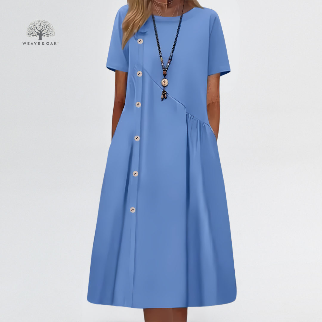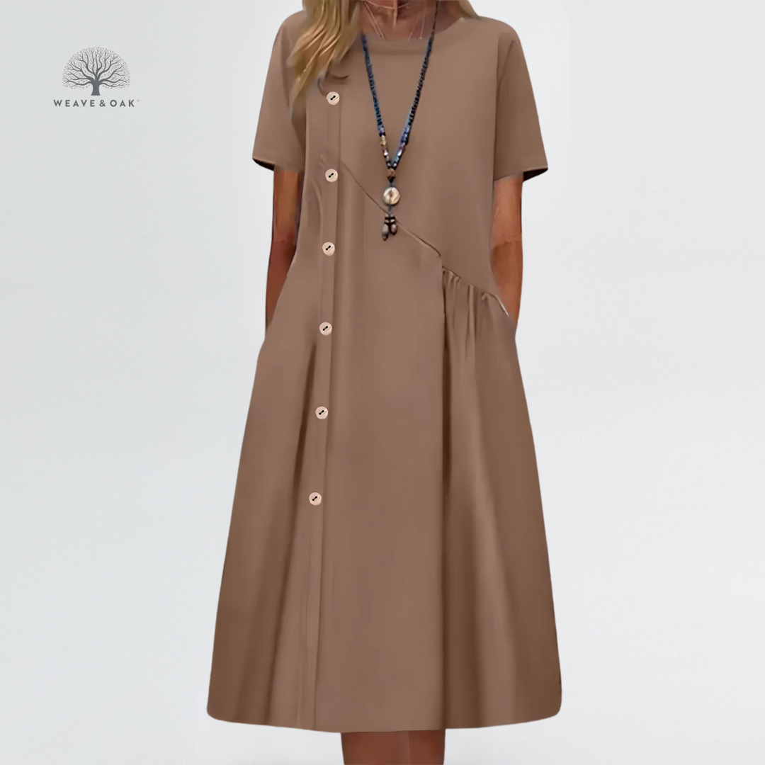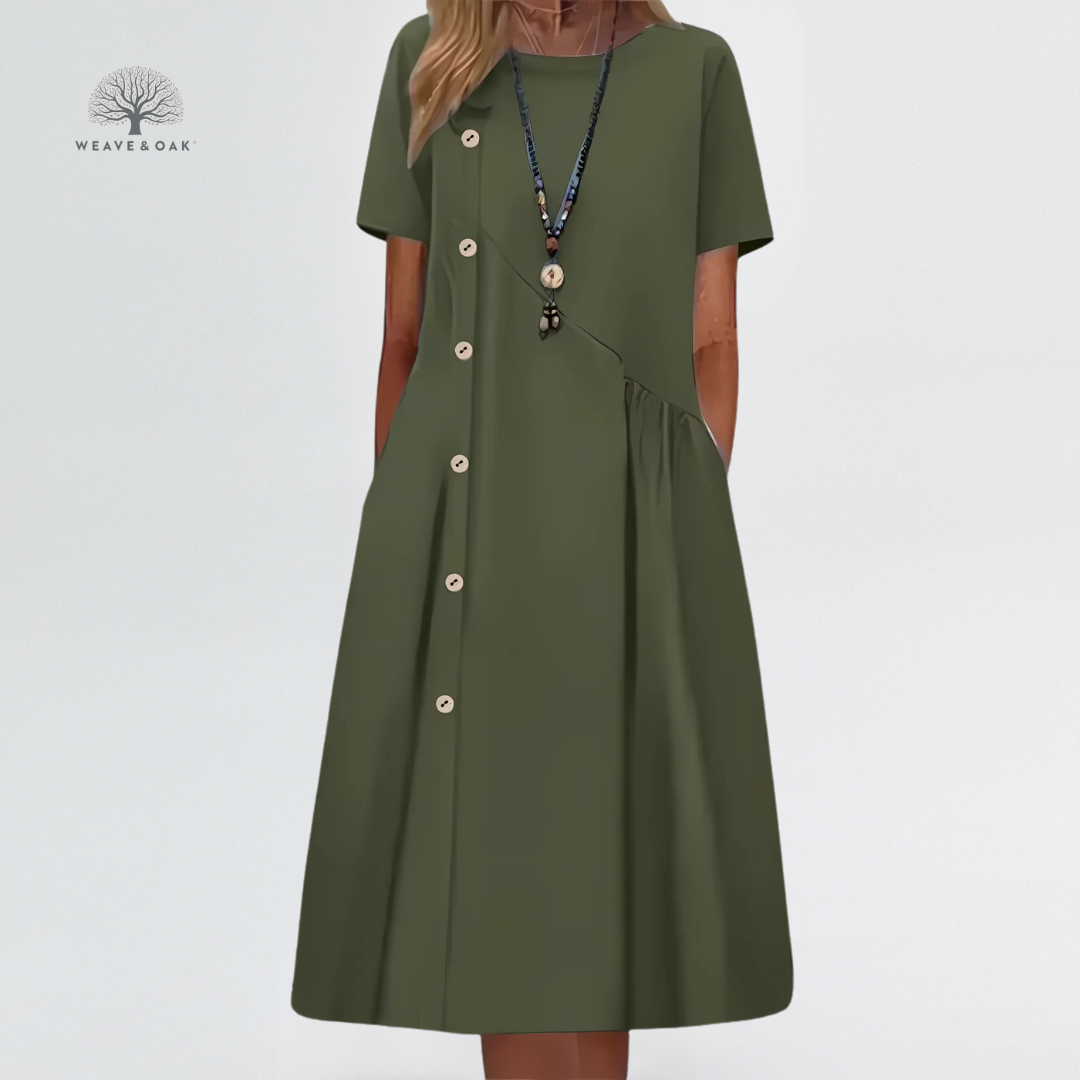 Agnes | Button Detail Linen Blend Tummy Flattering Dress