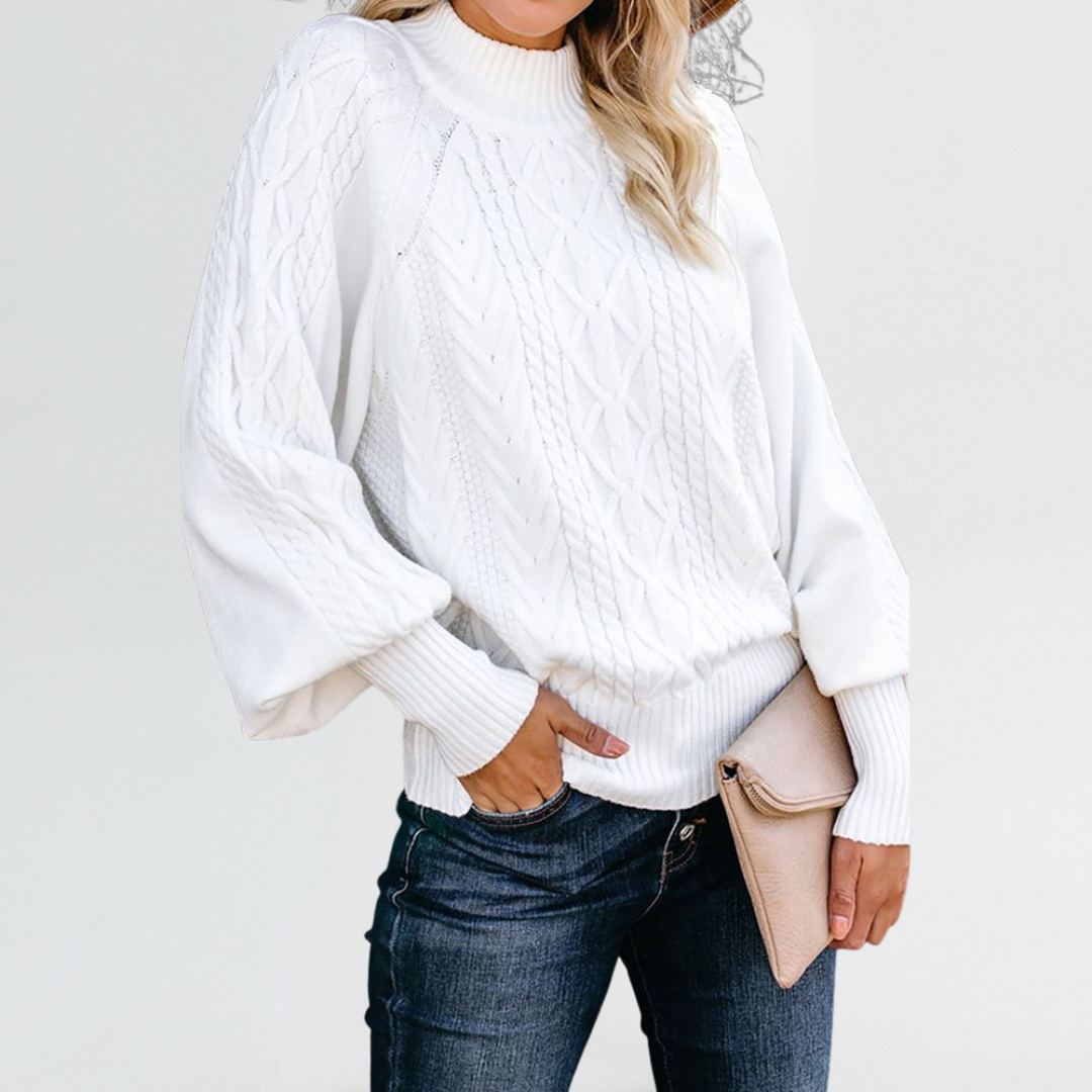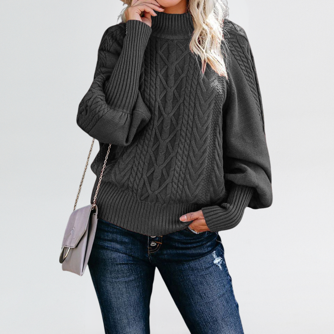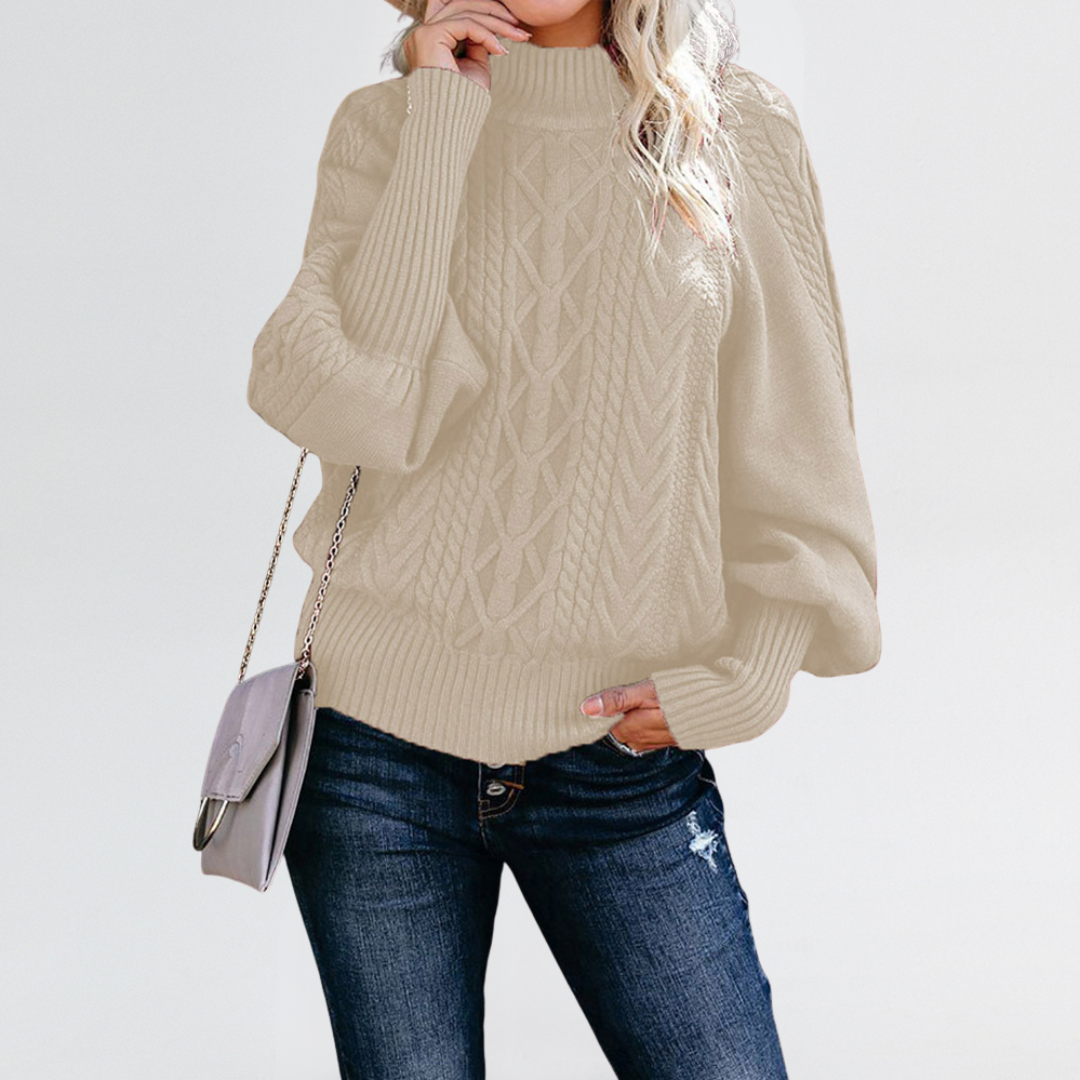 The classic cable-knit panel adds texture and interest, while the relaxed shape sits comfortably through the body — skimming rather than clinging. The sleeves provide gentle coverage and freedom of movement, making it ideal for everyday wear throughout the cooler months.