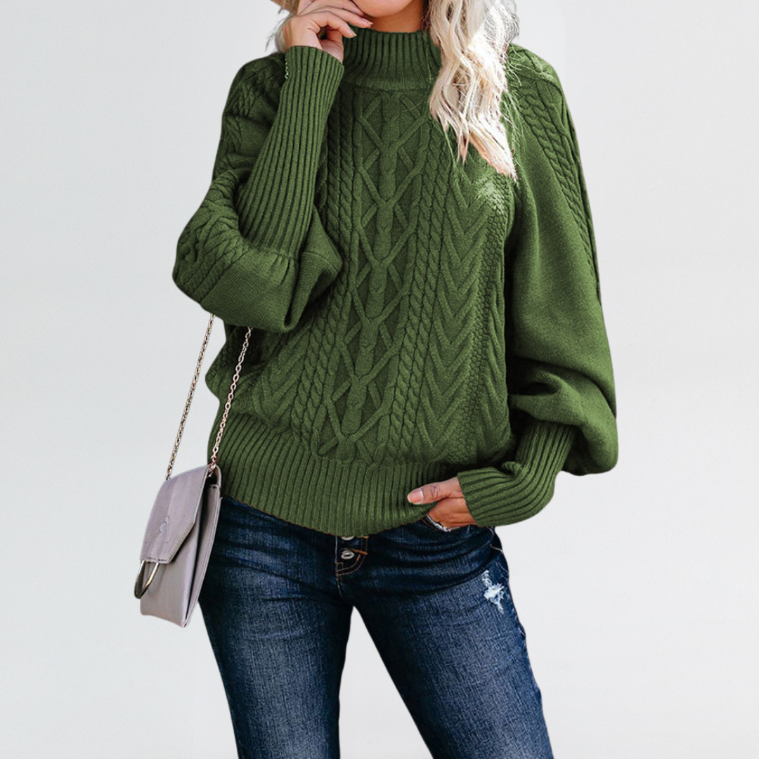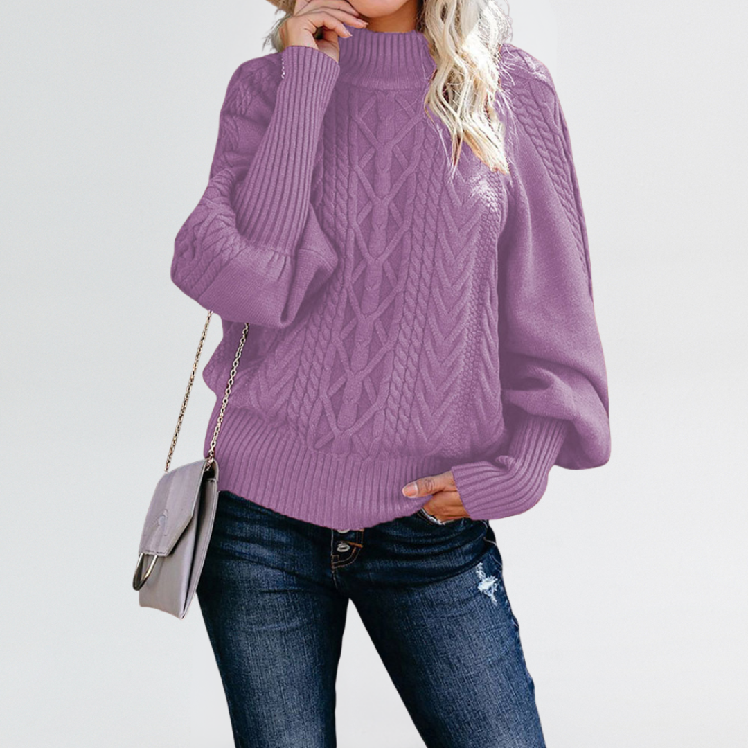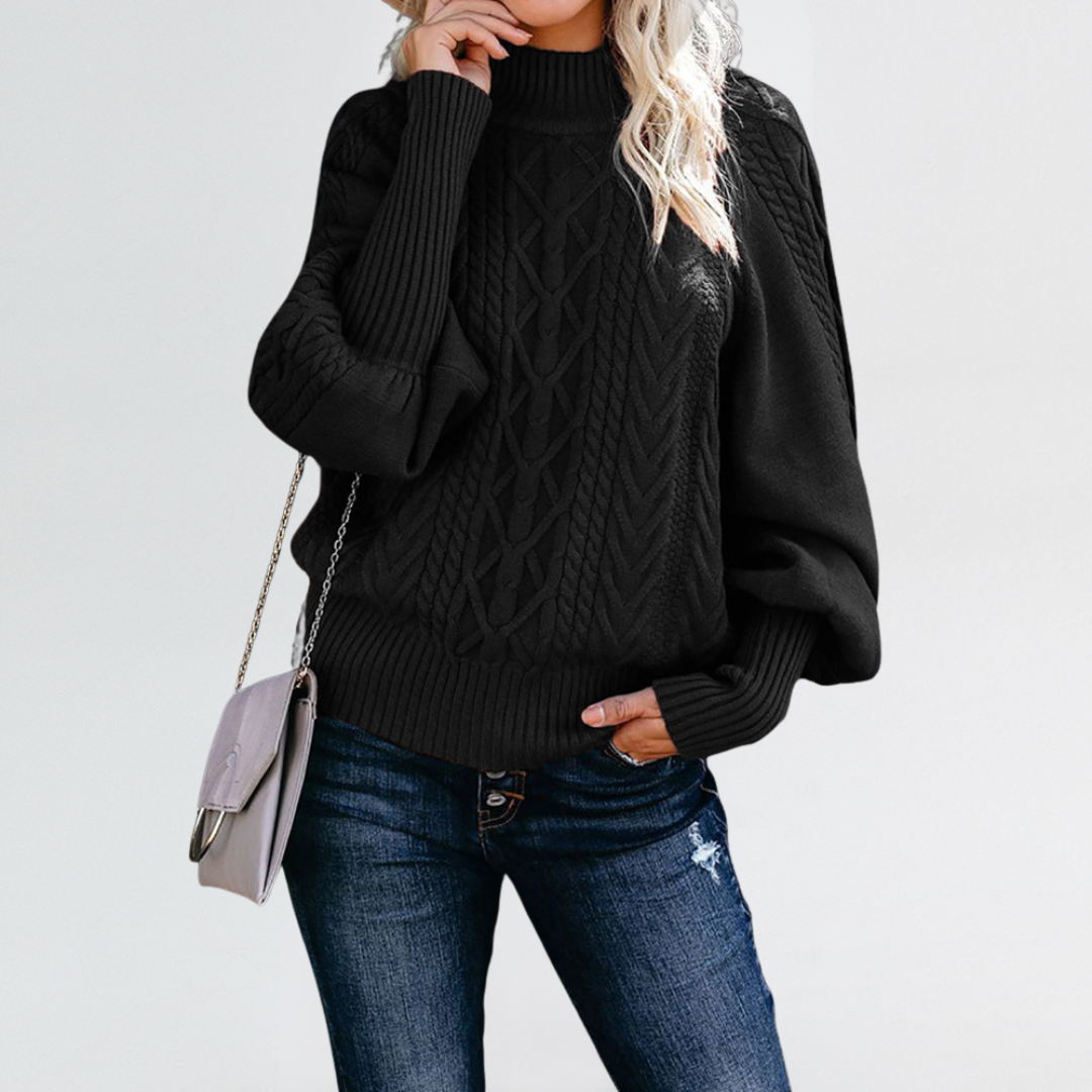 The classic cable-knit panel adds texture and interest, while the relaxed shape sits comfortably through the body — skimming rather than clinging. The sleeves provide gentle coverage and freedom of movement, making it ideal for everyday wear throughout the cooler months.