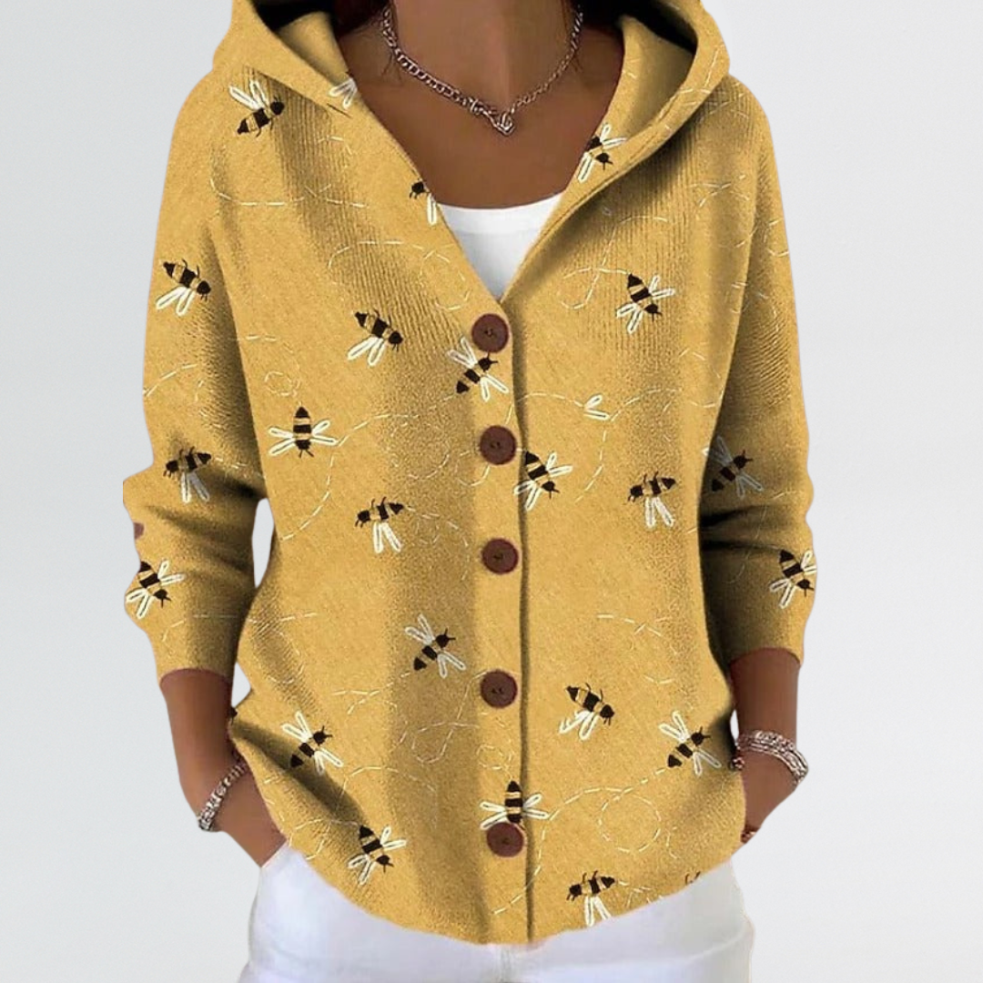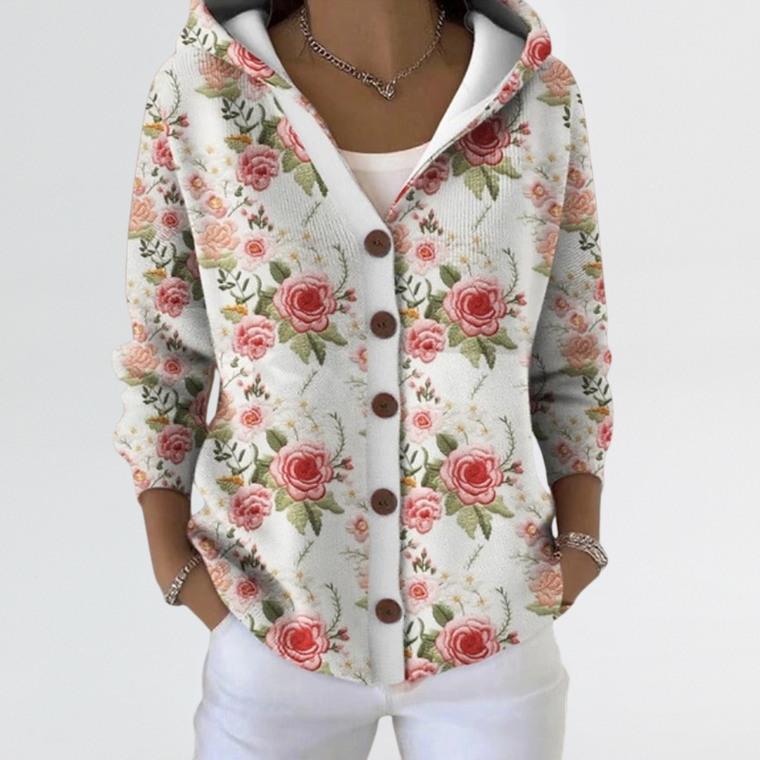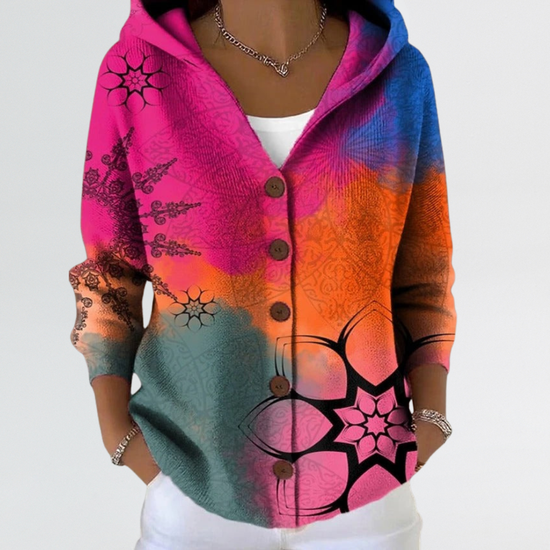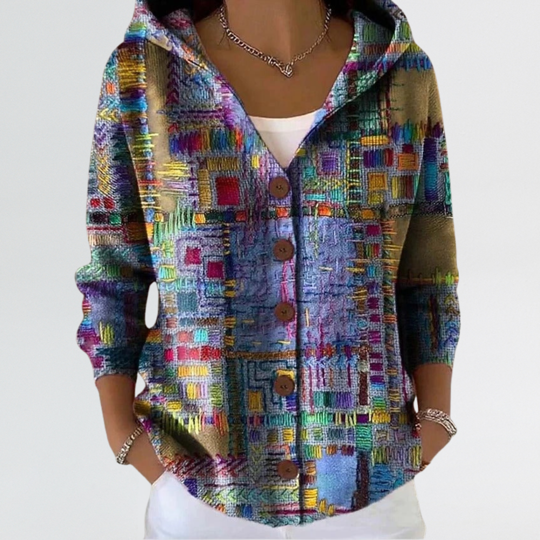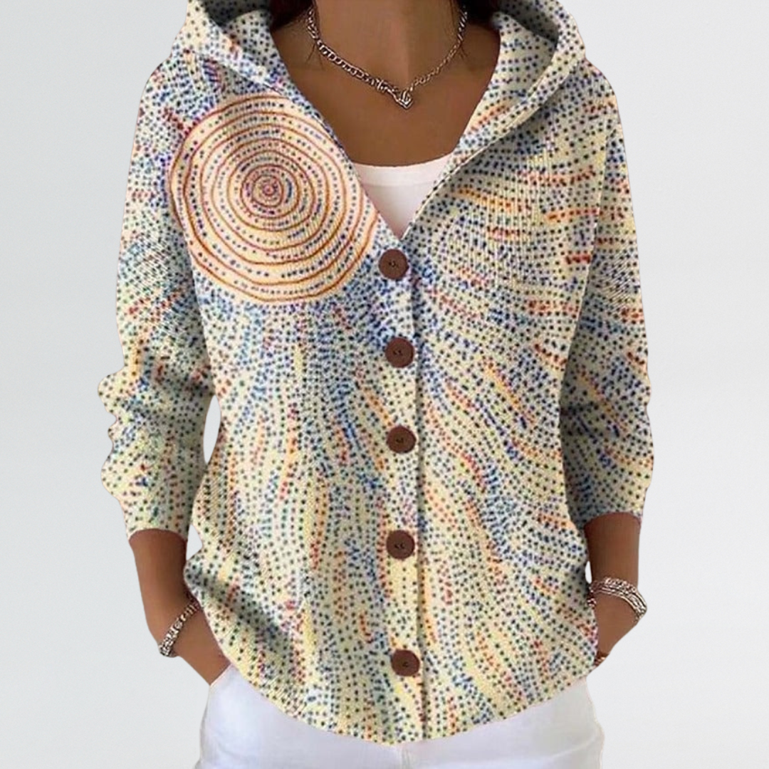 Eliza | Soft Abstract Button-Front Hooded Cardigan