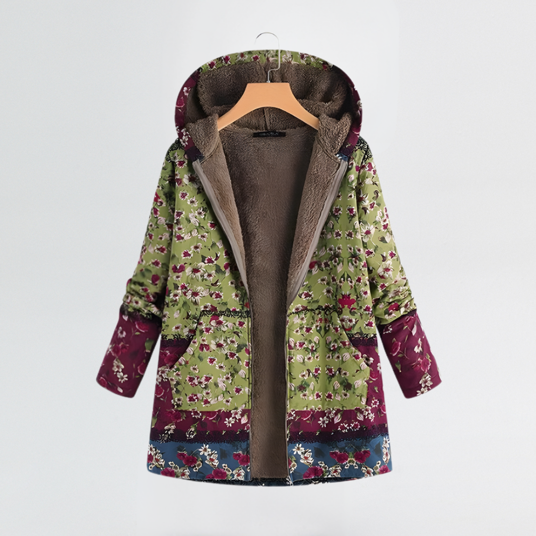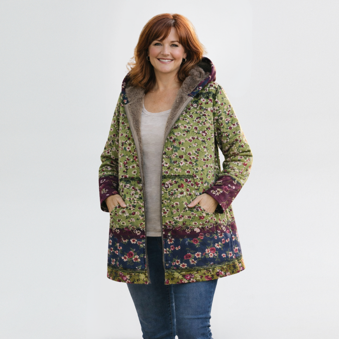Elowen | Fleece-Lined Floral Hooded Jacket