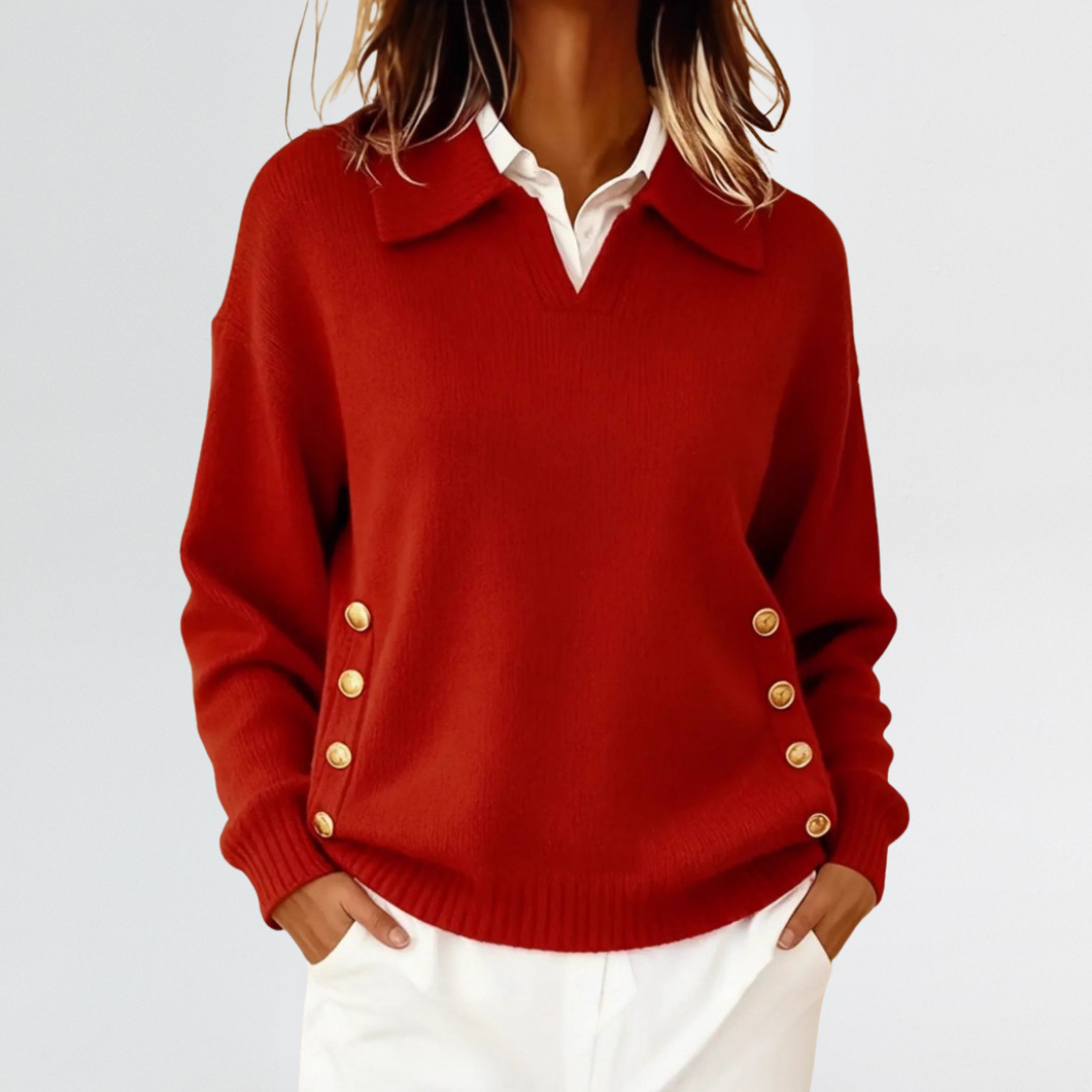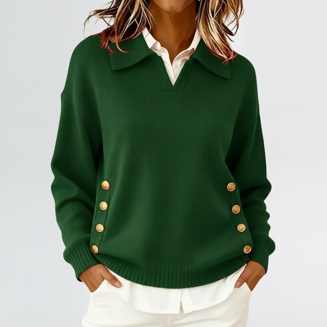 Margaret | Button-Detail Collared Knit Jumper