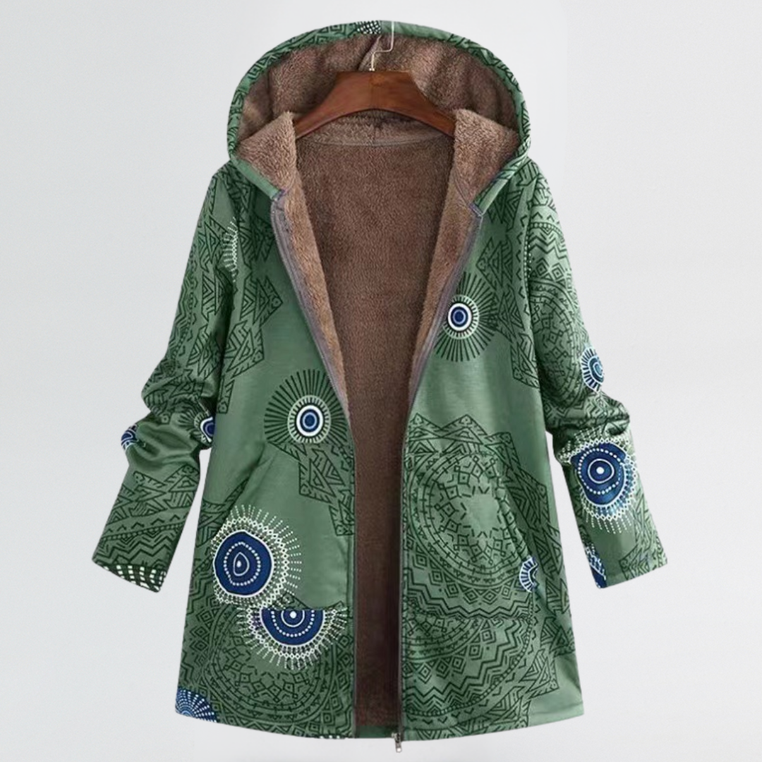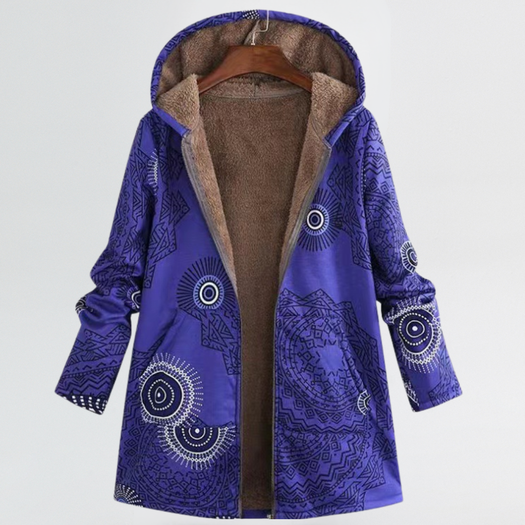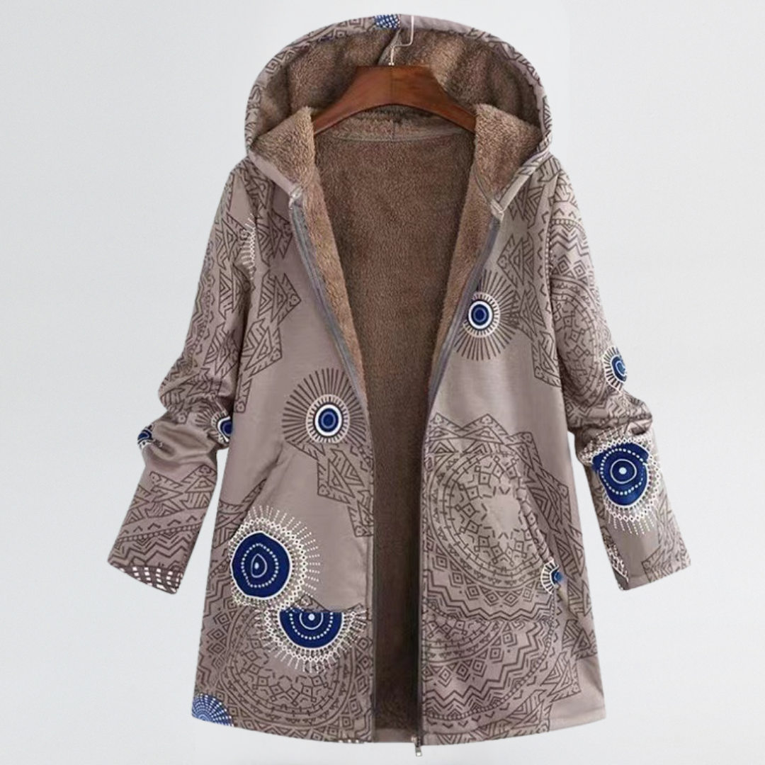 Marina | Cosy Patterned Hooded Coat with Relaxed Fit
