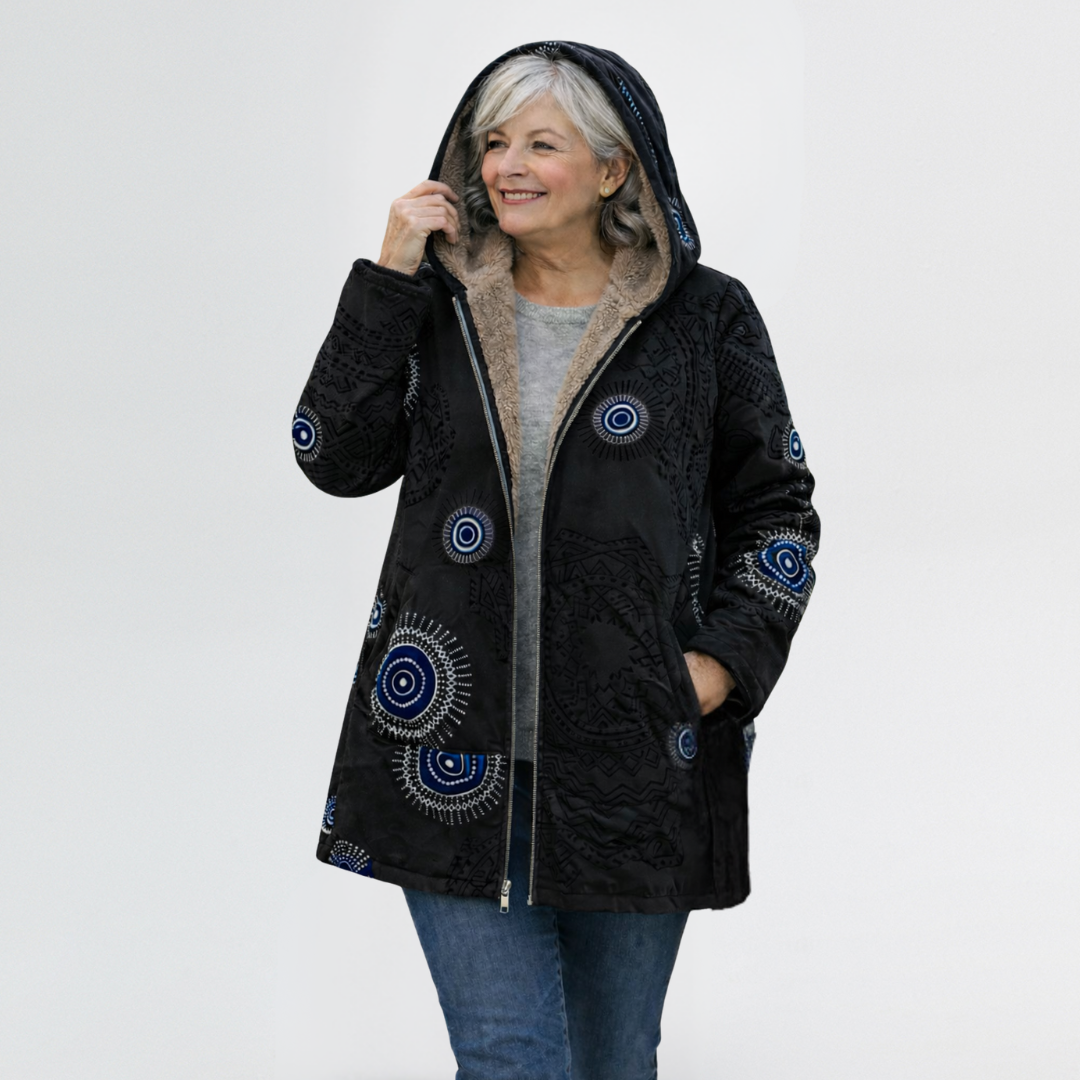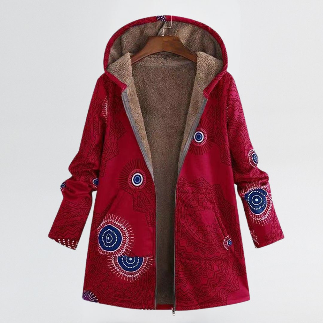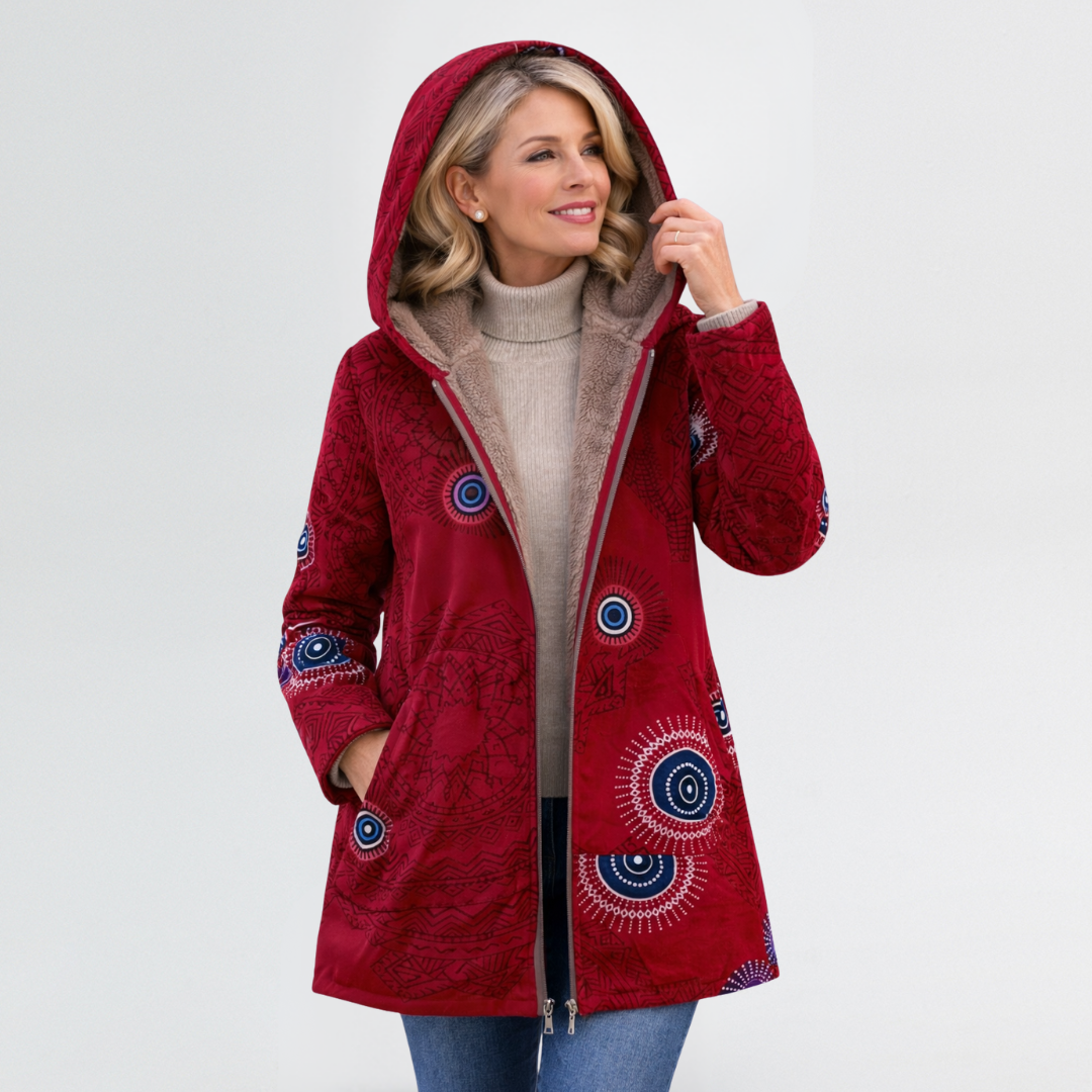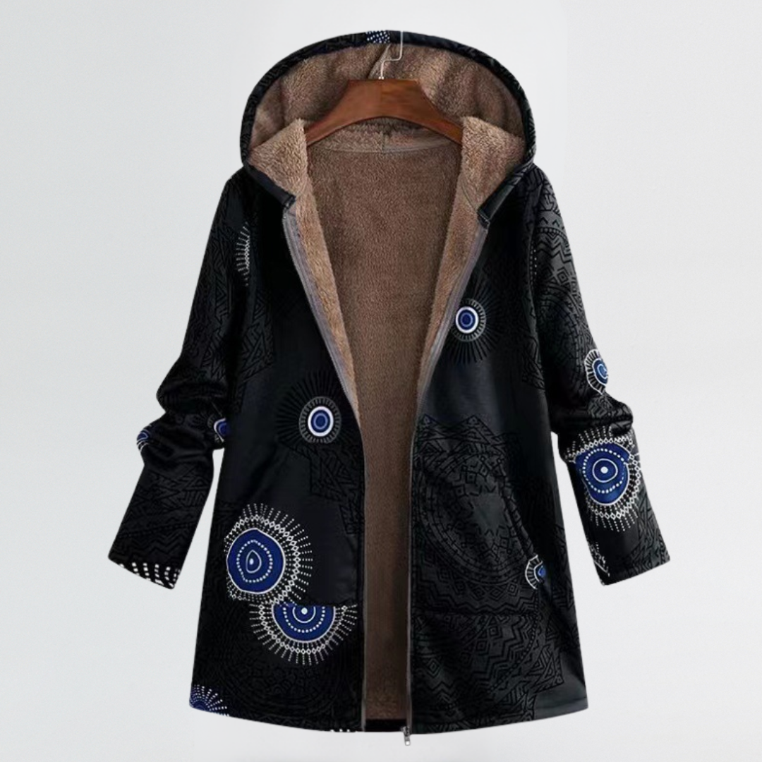 Marina | Cosy Patterned Hooded Coat with Relaxed Fit